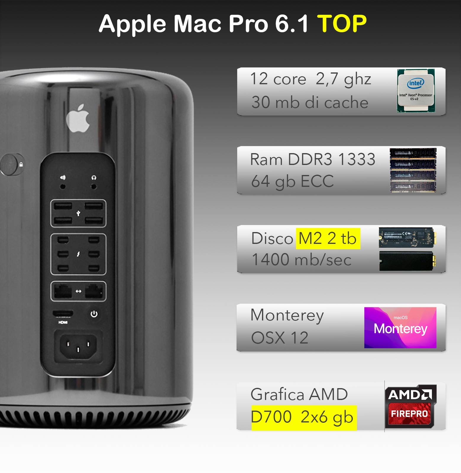 Workstation Audio basata su Mac Pro 5.1 - 12 core ed interfaccia audio e MIDI MOTU 828 MK3. Un'ottima macchina per l'esecuzione di Logic Pro, Cubase, Ableton Live, Pro Tools, FL Studio, Reason, Digital Performer, Presonus Studio One. La generosa RAM ed i veloci SSD in dotazione permettono la lettura contemporanea in tempo reale di numerose tracce sia di audio che di virtual instruments. Librerie orchestrali scritte per Native Instruments Kontakt permettono la realizzazione di complesse tracce orchestrali. Eventualmente disponibile ( + 200 €) monitor 30" Apple Cinema Display la cui retroilluminazione non è più uniforme, ma non ha pixel bruciati e rende un'ottima visione dell'area di lavoro. NON VENDO IL MONITOR SEPARATAMENTE DAL RESTO!