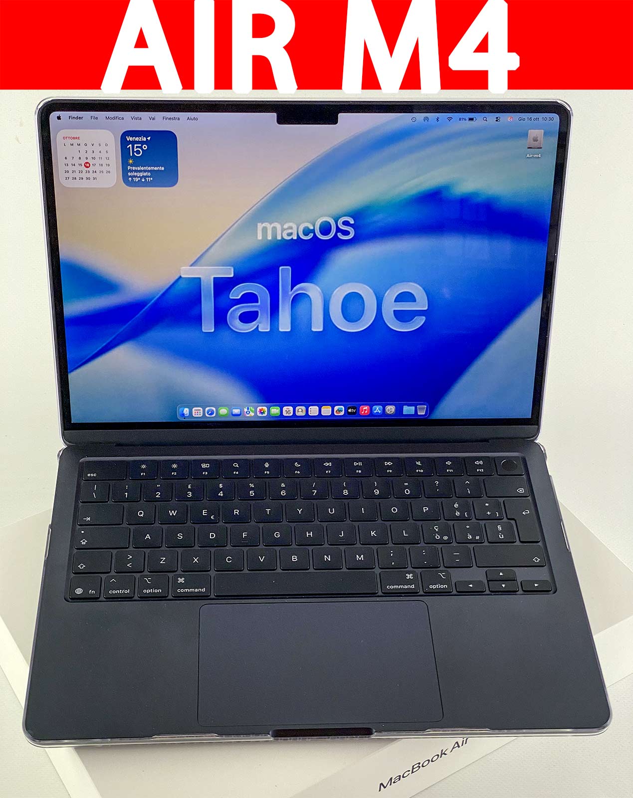 MacBook Air 13 M4 2025 Praticamente nuovo, piena garanzia + Apple care. Batteria con 3 cicli di ricarica, 16 gb di ram e disco da 256 gb colore mezzanotte completo d’imballo, caricatore e cavo originale, cover trasparente bellissimo. Accessori inclusi: Hub usb-3, case rigido per una max protezione. Molti programmi disponibili (Adobe, Office, video, musica). Piccolo segno sull’angolo sinistro (solo estetico). Qualsiasi prova. Preferisco consegna a mano ( Mestre VE) ma posso spedire (corriere espresso). Angelo Venezia 328-3145171